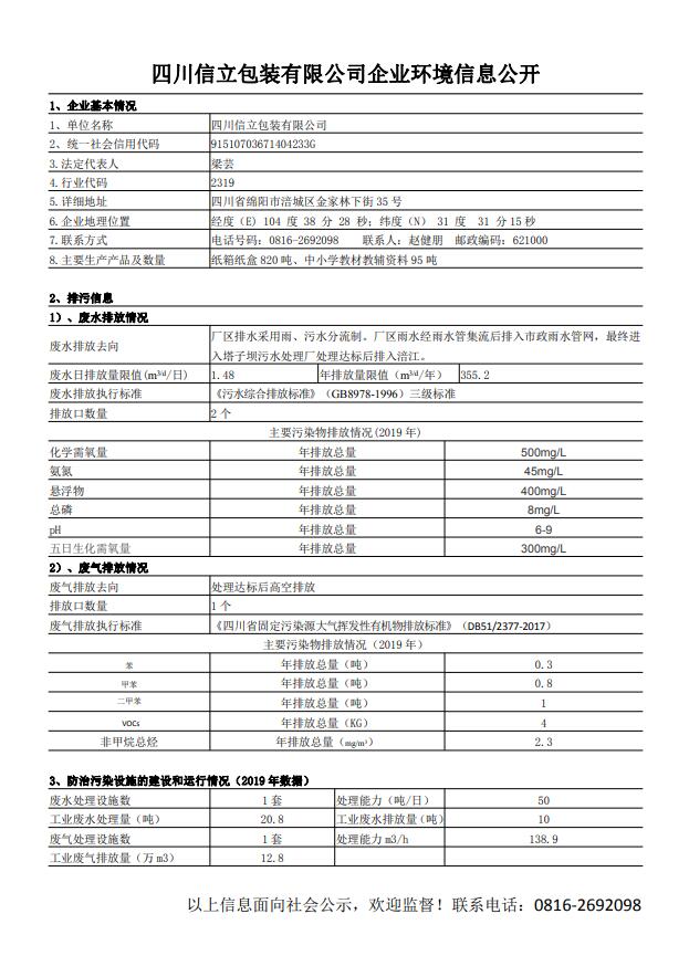 四川信立包装有限公司企业环境信息公开